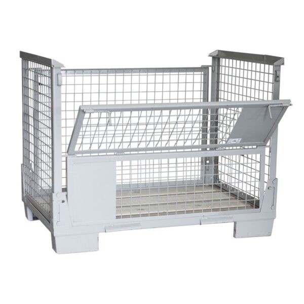 The foldable gitter boxes are constructed from high-strength steel, mostly powder coated for corrosion resistance. On request, galvanisation is also possible.